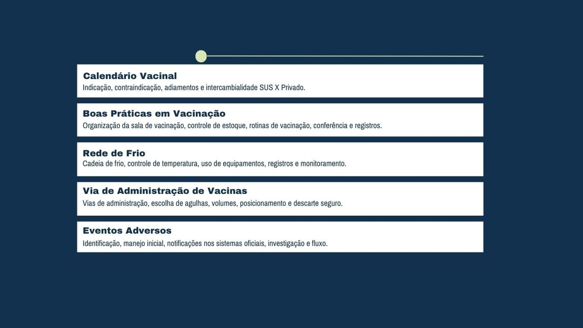 Oferecemos palestras e treinamentos personalizados e atualizados com base nas normativas do Ministério da Saúde, ANVISA e Sociedades Médicas e Científicas. A formação é voltada para clínicas, consultórios, hospitais, serviços públicos e privados de vacinação.